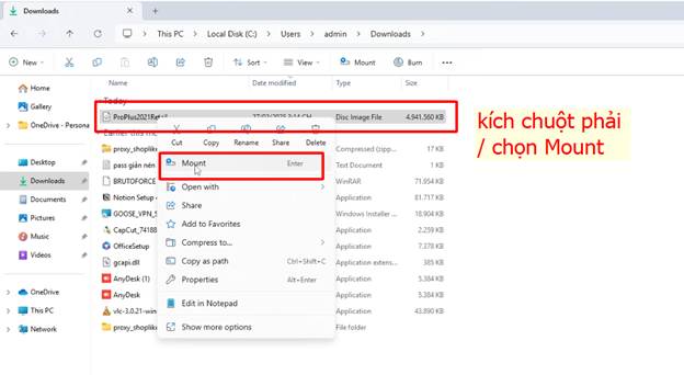 Mở chạy bằng cách nhấn dupble click hoặc kích phải chọn Mout ra ổ đĩa ảo
